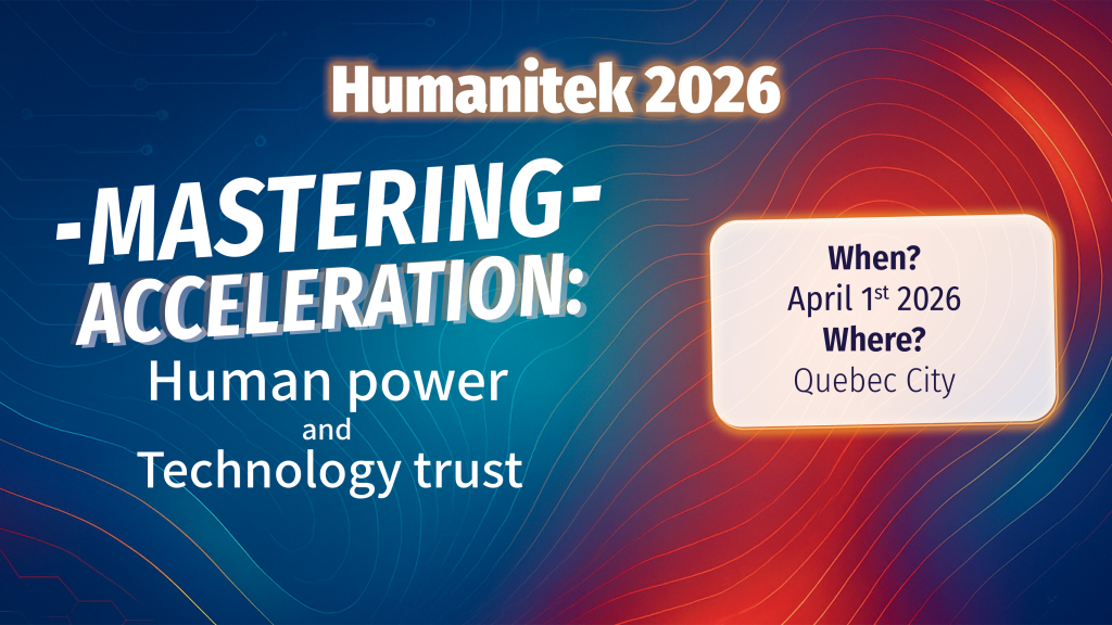 On April 1, 2026, at the Port of Quebec Cruise Terminal, Humanitek will bring together 300 public decision-makers, researchers, entrepreneurs, and innovators around the theme “Mastering Acceleration: Human Power and Technology Trust.”