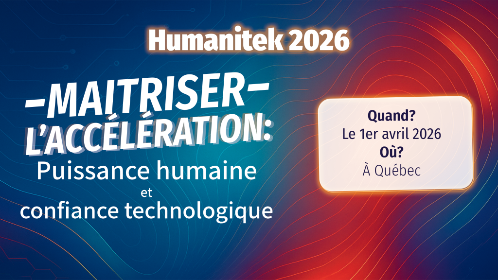 Le 1er avril 2026, au Terminal de croisière du Port de Québec, Humanitek réunira 300 décideurs publics, chercheurs, entrepreneurs et innovateurs autour du thème « Maîtriser l’accélération : puissance humaine et confiance technologique. »